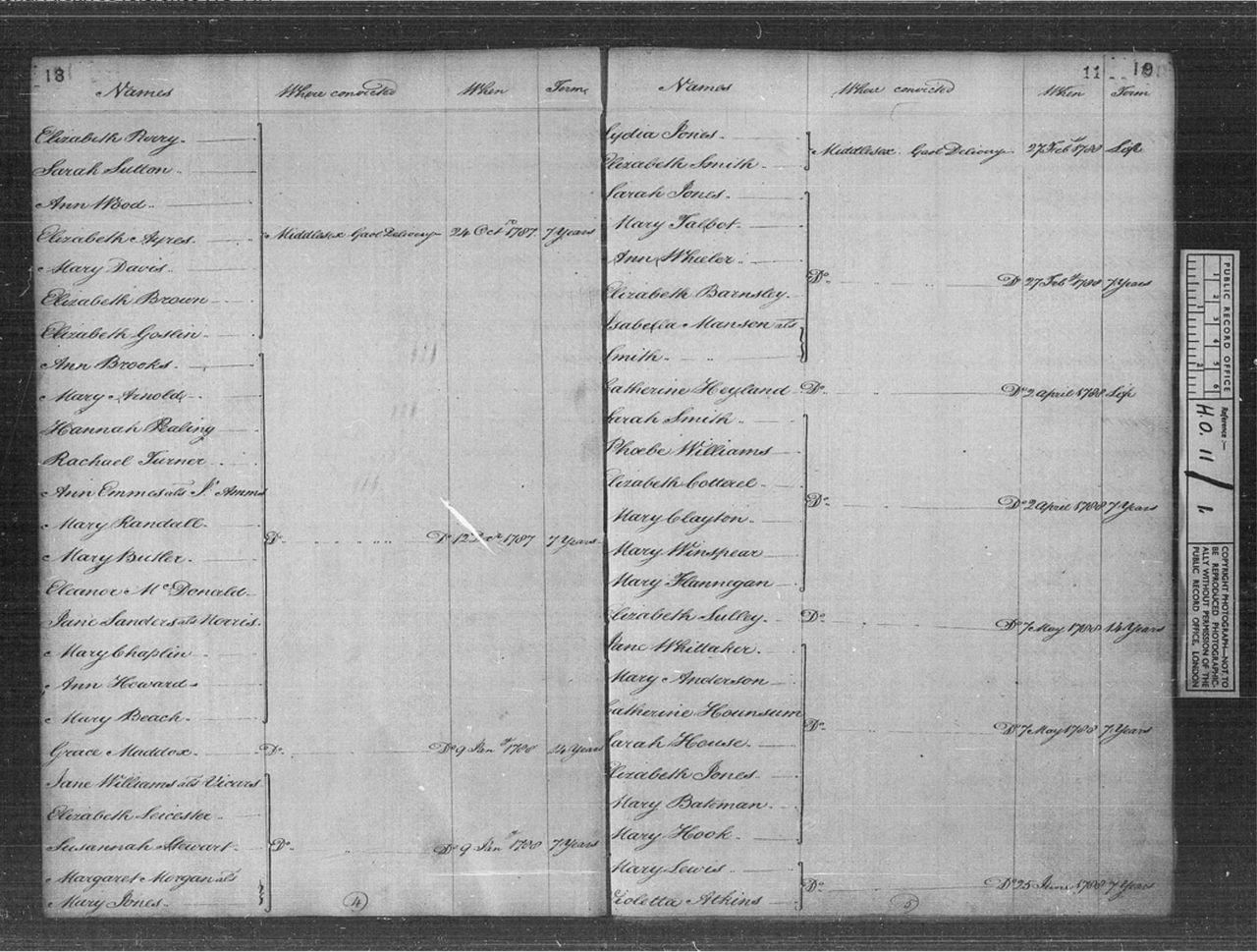 Picture: Mary Butler’s convict transportation record on the Lady Juliana.