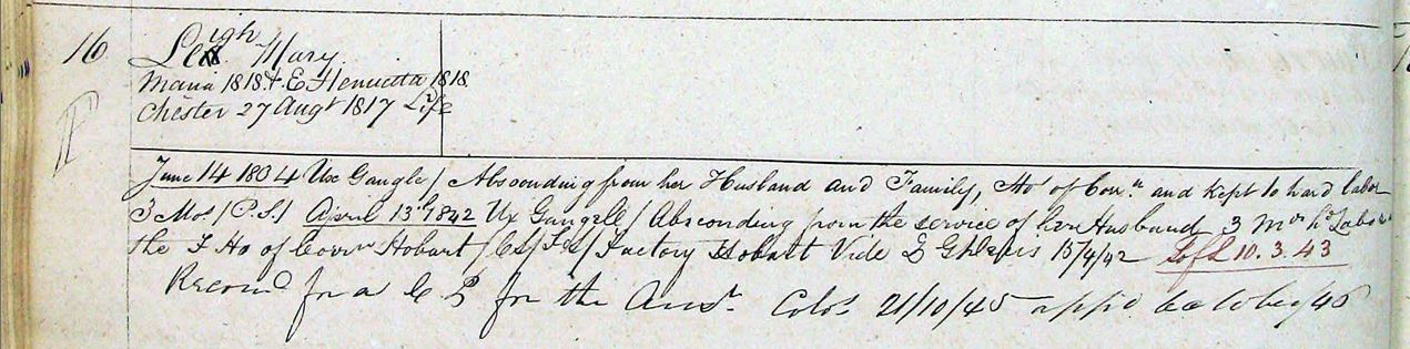 Picture: Colonial paperwork from Mary absconding her husband.